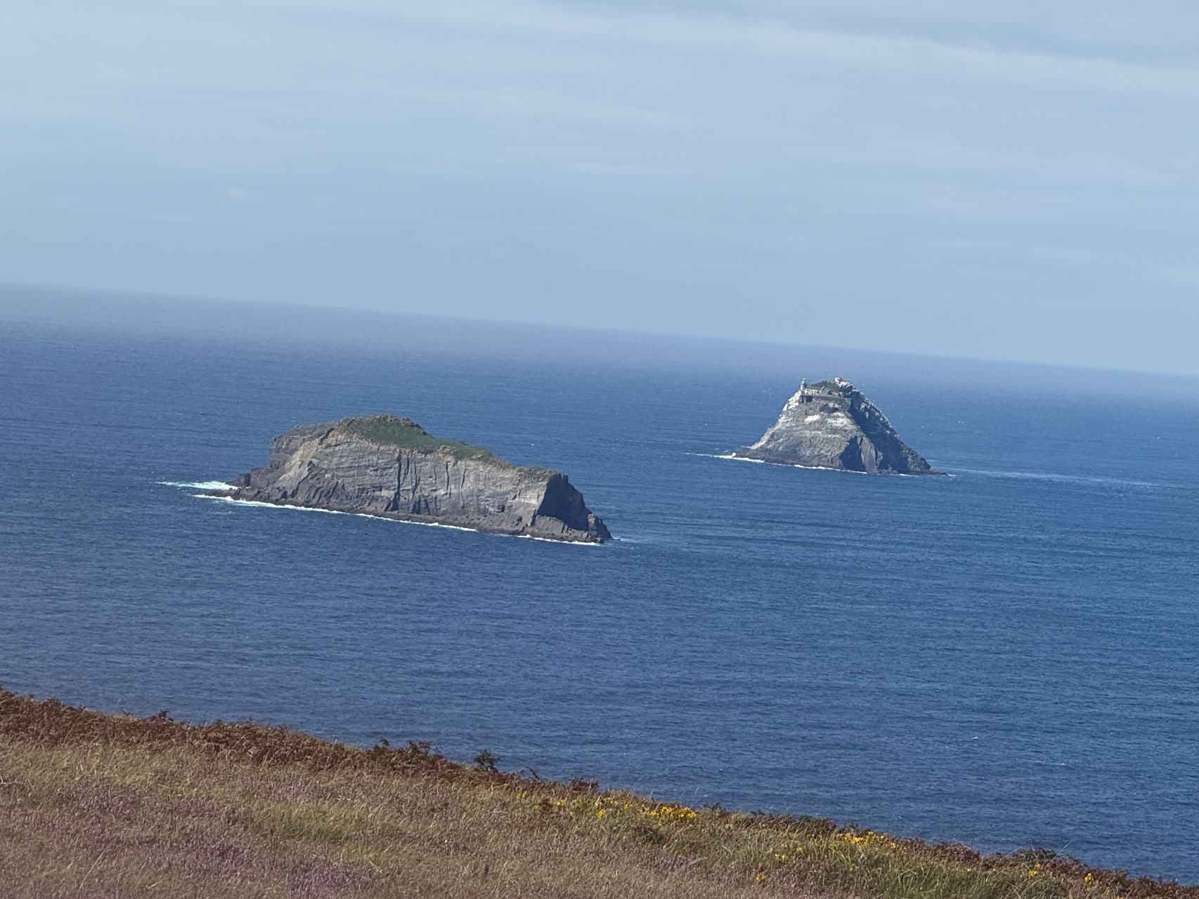 This week Máire and her sisters spent the most idyllic day on Dursey Island, Beara, Co. Cork (which can only be reached by cable car), where their great-grandmother came from. The weather was glorious, which made the ten-mile walk an absolute pleasure. They climbed the track to the headland at the end of the island and were rewarded by the most spectacular views of the Bull, Cow and Calf Rocks, of the Skelligs a bit farther away, and of the hills of Kerry in the distance. (This photo just shows the Bull and Cow Rocks - which are much further away from the shore than they appear.) They had the packed lunch and drinks they brought with them while seated on top of the headland, facing out to sea. They were surrounded by heather in full bloom, hundreds of red admiral butterflies and the smell of wild camomile, and the only sounds to be heard were the crickets and the wind!
