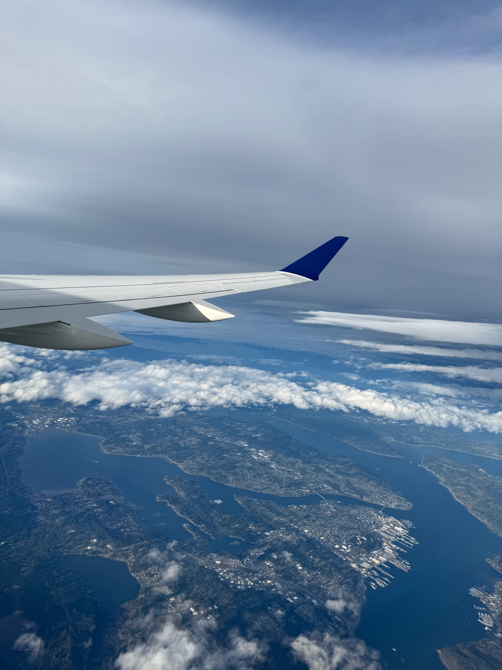 Taking off from Seattle, bound for Anchorage; account of Máire’s mother’s funeral