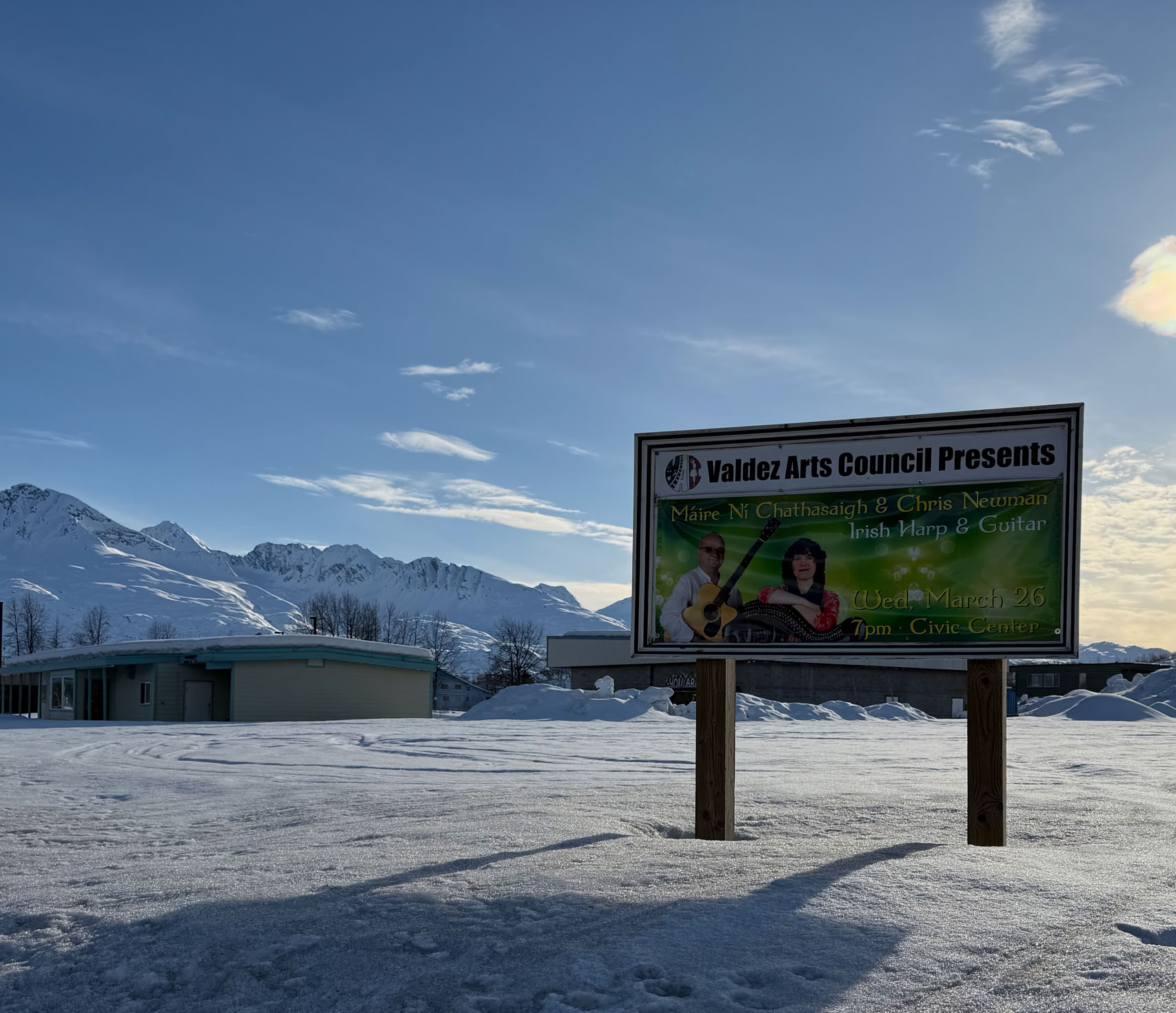 The scenery in Alaska is utterly spectacular. Here are a couple of pics taken from the boat of the incredibly knowledgeable David and Annette Janka, who brought us on the most amazing tour of Valdez Harbour on the morning before our concert in Valdez, plus a pic of the great concert poster with a snowy backdrop. Máire used no trickery when taking the photos: this is exactly how the harbour looks - it’s just that the reflections of the mountains in the sea make the scene seem almost otherworldly. Huge thanks to the Valdez Arts Council for hosting us for a concert in their Civic Center!